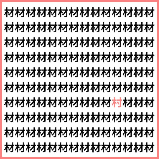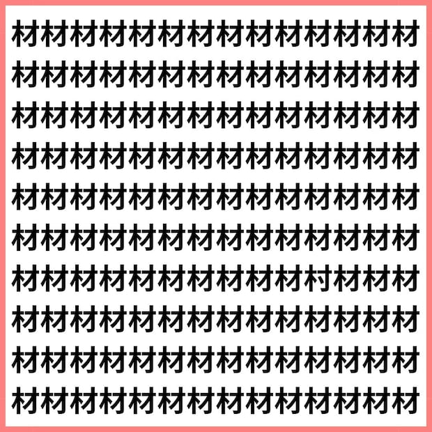 たくさんの「材」の中に、1文字だけ違う漢字が混ざっています。