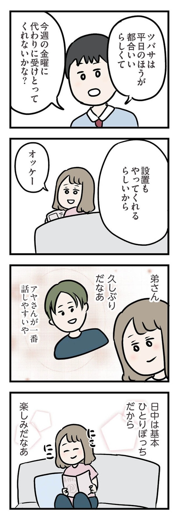 29歳の専業主婦・アヤは、夫・ナオの実家の近くで暮らすため、故郷大阪から遠い埼玉の地へ転居した。マイホームは立派な一軒家だけれど、広すぎて寂しい。義母はいい人だけど、デリカシーに欠けていて話しづらい。そして夫は、優しいけれど自分よりも義母を優先する…そんな息苦しい生活の中で、アヤが安心して話せるのは義弟・ツバサだけ。自由で自立したツバサとの会話は楽しくて、アヤは次第に彼に惹かれ始めてしまう…。