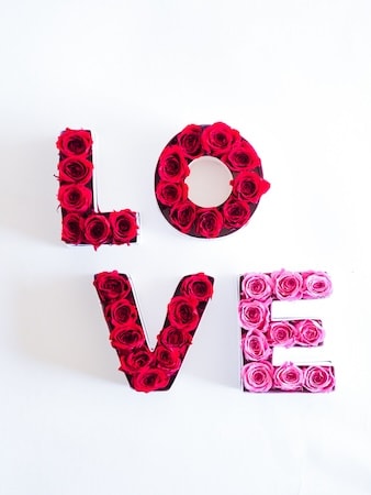 使用するのは、生花の美しさをそのままに、長期保存が可能な高品質なプリザーブドフワラーのバラ。専用の文字箱に丁寧に飾られたバラは、水やりや手入れの手間がかからず、数年にわたり美しい状態を保つ。
