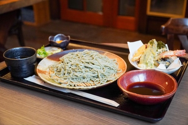 布施のまちなか、通りの角をふと曲がると、古びた木の扉が目に入る。くぐると広がるのは、石臼で挽かれたそば粉の香りと、足元にやさしい畳の感触。