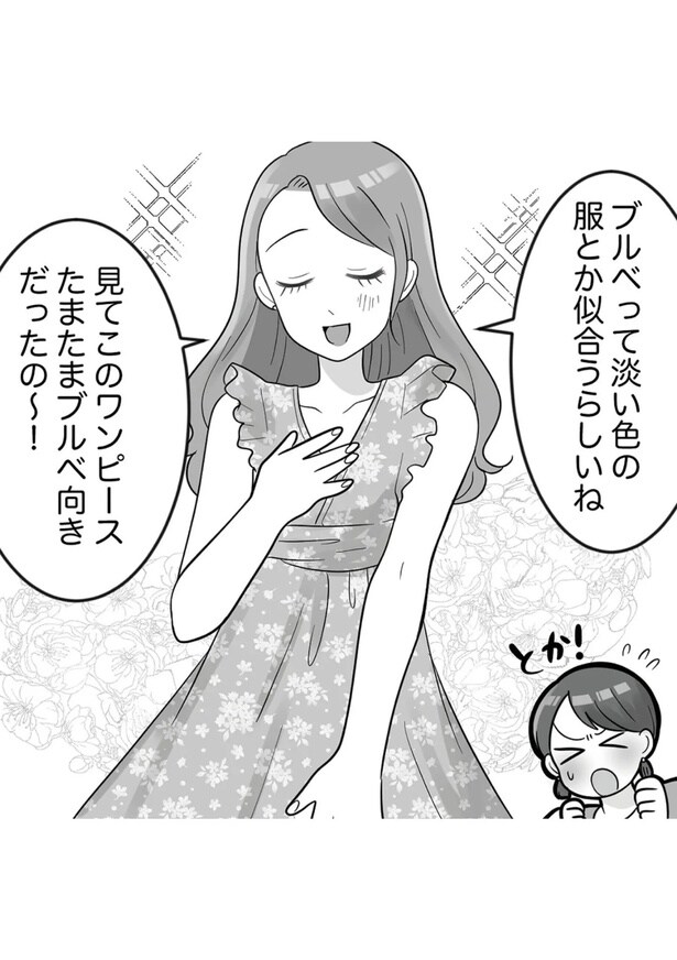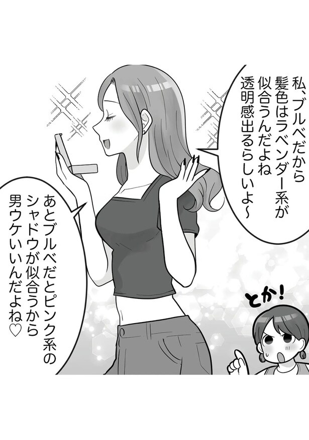美人な女子大生の勘違いと暴走が止まらない「ブルベな私が大優勝~勘違い女子大生の末路~」(原作・リアコミ、漫画・マスハタ)から全8回連載でお届け。今回は第3回となる。
