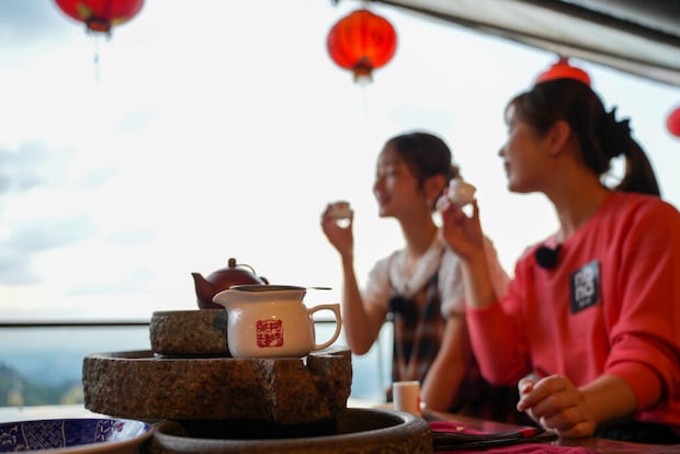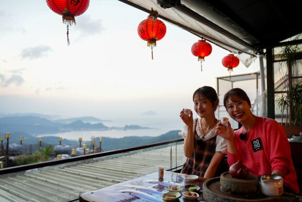 山や海、そして沈む夕日を眺めながら、ゆったりと台湾茶を味わいました。