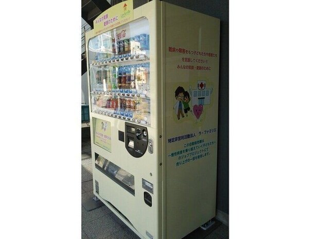 愛媛県松山市を拠点に、2002年、難病のある子どもとそれを懸命に支える家族を支援することを目的に設立。大きな病気のある子どもと、家族に寄り添い力になるためにさまざまな活動を展開中。写真は、元康さんがボディの画をデザインした支援自販機。