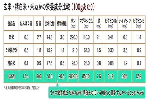 お米のぬか層は、栄養価の最も高い部分で、その栄養価はパーフェクトに近いものの、人間にとって重要な「カルシウム」は微量しかない。