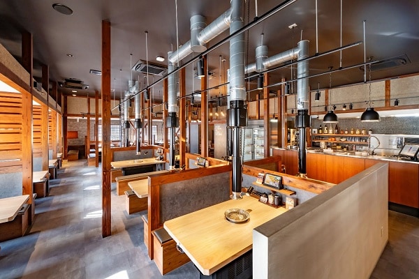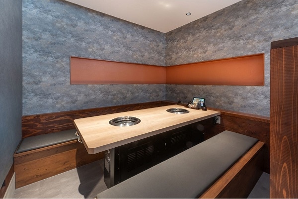 「焼肉どんどん亭 倉敷堀南店」は、和モダンな内装とプライベート感を重視した設計が特徴。