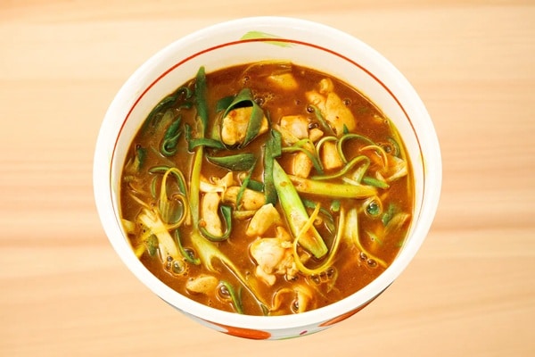 「スパイシーカレーうどん」は、和風だしの旨味と、数種類のスパイスを効かせた特製カレーが絶妙に融合した熱々の一杯。程よい辛さが寒い季節に心地よく、食欲を刺激する。うどんとスープが絡み合う濃厚な味わいを楽しんでみて。