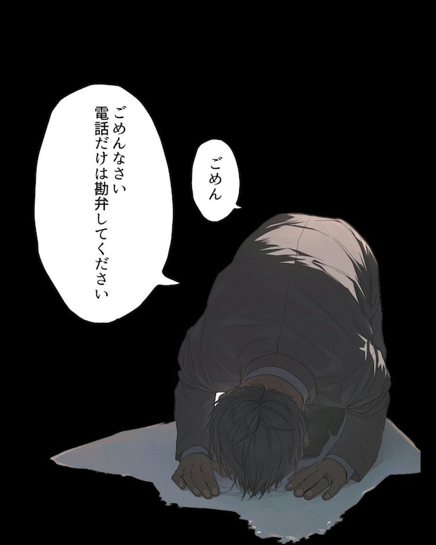 不倫の証拠を突きつけると、逆ギレした夫。あきれてしまいますね。妻と義母に追及され、ようやく自分の非を認めました。ところが、この期に及んでも「電話だけは勘弁して」と土下座。いまさら謝罪しても遅いですよね…。同情の余地もありません。