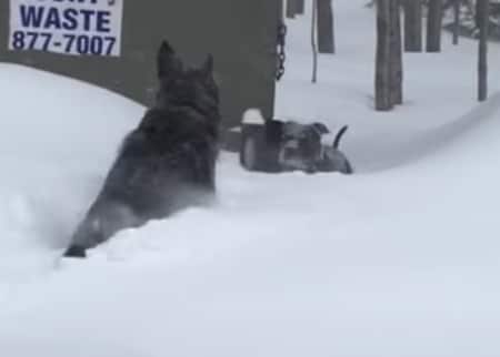 友達犬のところまで雪をかき分けて、