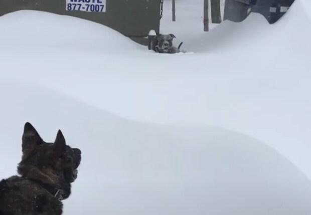 友達犬のところまで雪をかき分けて、