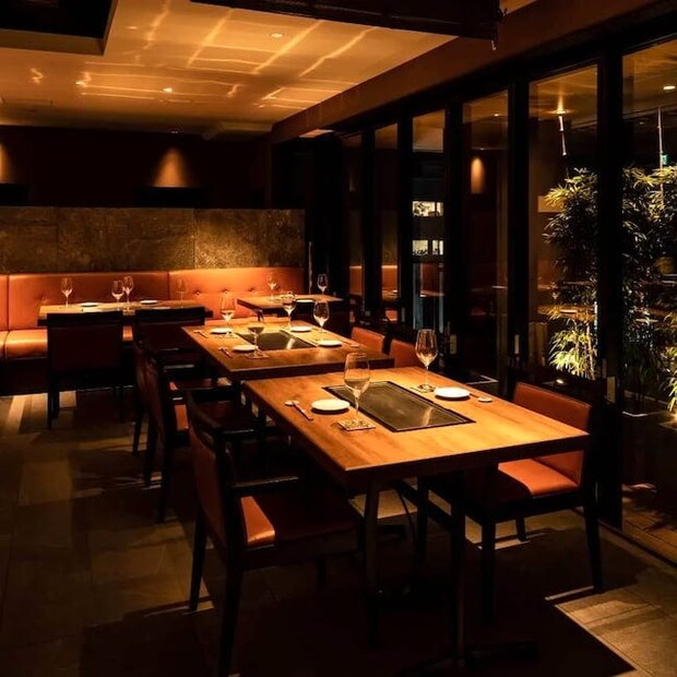 契約牧場の黒毛和牛や漁港直送の海鮮、自社ファームの新鮮な野菜を、そのうまみを極めた鉄板焼きで振る舞う「くずし鉄板 あばぐら 恵比寿店」。ソムリエ厳選の日本酒も自慢で、鉄板焼きとのペアリングを堪能すれば口福に包まれるはず。店内はダウンライトで照らされたしっとりと落ち着いたムードで、カウンターだけでなくテーブル席にも鉄板が完備されているのがポイント。