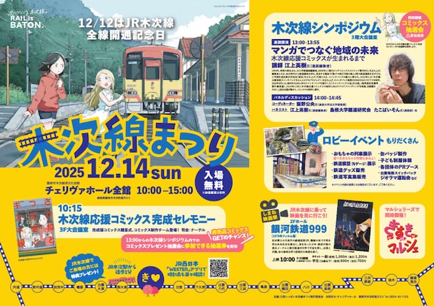 多くの方々からのご支援から生まれた木次線応援コミックスの完成セレモニーや「銀河鉄道999」の上映会、鉄道模型の展示や鉄道グッズの販売など、鉄道好き・木次線好きにはたまらないイベントとなっています。