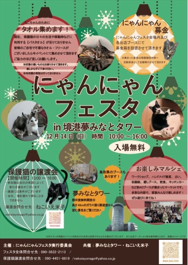 保護猫の譲渡会やねこちゃんのためのタオル集め、募金などのブースがございます。