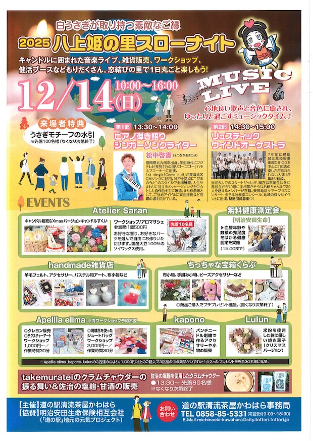 今年も雑貨やお菓子、塩麹の販売、キャンドル、テクスチャーアート、ジュートバッグのワークショップ、クラムチャウダーの振る舞いなど盛りだくさんの内容になっています!