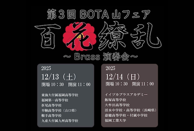 さらに、地元からは九州コンクールで金賞を受賞した飯塚高校吹奏楽部や嘉穂高等学校附属中学校吹奏楽部も出演し、豪華なプログラムとなっています。