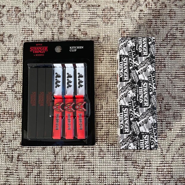 左:キッチンクリップ 税込550円 / 右:5柄入りストックバッグ 税込550円