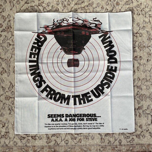 か、かわいい〜W48×H48cmと大判なので、バンダナのように使えそう👀お弁当を包むのにも良いですね🍙もう一枚はノーマークでしたが、店頭で見たらデザインがカッコ良かったので思わずカゴへ🛒