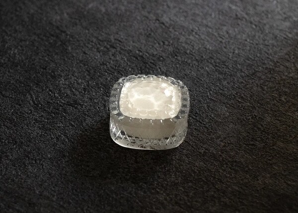 “光の工芸品”として話題沸騰中の「クリスタルバターサンド《秘宝》」は、透明な琥珀羹(クリスタルコンテナ)にバター練り物を封じ込めた新しい形のバターサンド。