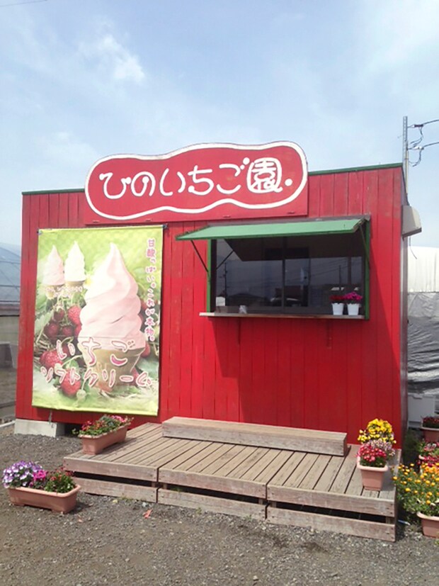 「ひのいちご園」には、いちごの直売所も併設されており、農園で完熟した摘みたてのいちごを購入することができます。
