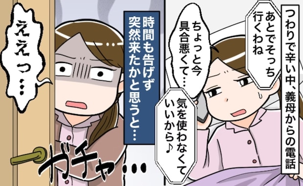 しかし、投稿者さんの体調不良を気にせずに自宅を訪問してきたり、本人がつらいと言っているのに「大丈夫」と意見を押し付けたりする義母の言動には驚かされます。
