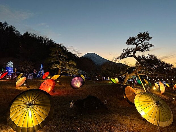 そんな魅力あふれる施設では、毎年冬シーズンを迎えると「イルミネーションファンタジウム」を開催し、都会では味わえない絶景を楽しむことができる。富士山のシルエットを背景にしながら、イルミネーションが光輝く光景は圧巻の一言。