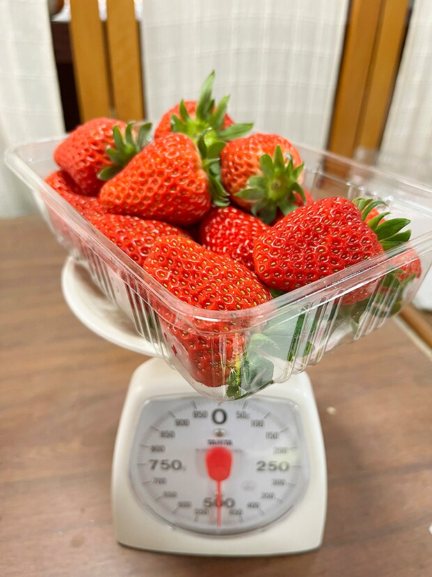いちご狩りを満喫した後は、園内で摘んだいちごを量り売りで購入することもできます。
