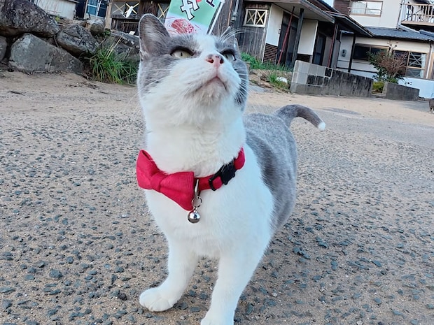 赤い蝶ネクタイがよく似合う、