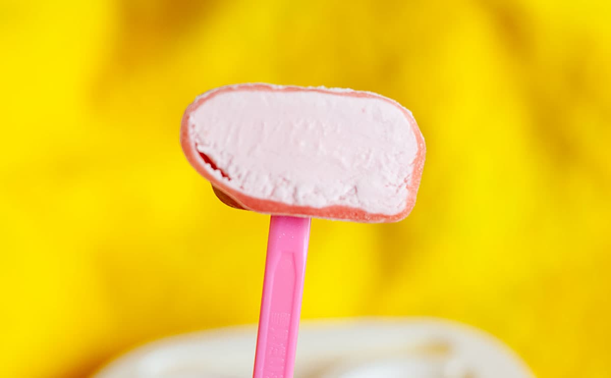もち生地だけではなく、中のいちごアイスももちろんピンク。こちらが断面の写真です。生地よりも、淡いピンクですね。