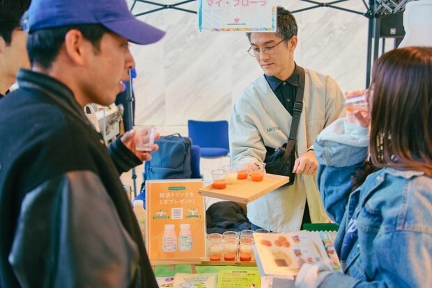 1階には親子向けの商品を扱う企業のブースが並びます。アイテムのサンプリングから、試飲・試食ができるブースも。