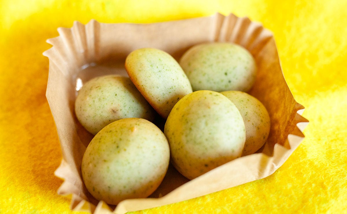 さっそく一つ食べてみると、もっちりとした弾力は思ったよりも強い印象です。あれですね、同一かどうかは不明ですが、食感はポンデケージョです。味に関しては、意外とのり塩感控えめ。塩味はあるけど生地本来の甘みもしっかり感じるし、のり(あおさ?)の風味もほんのり感じる程度で、思ったよりも違和感はありませんでした。