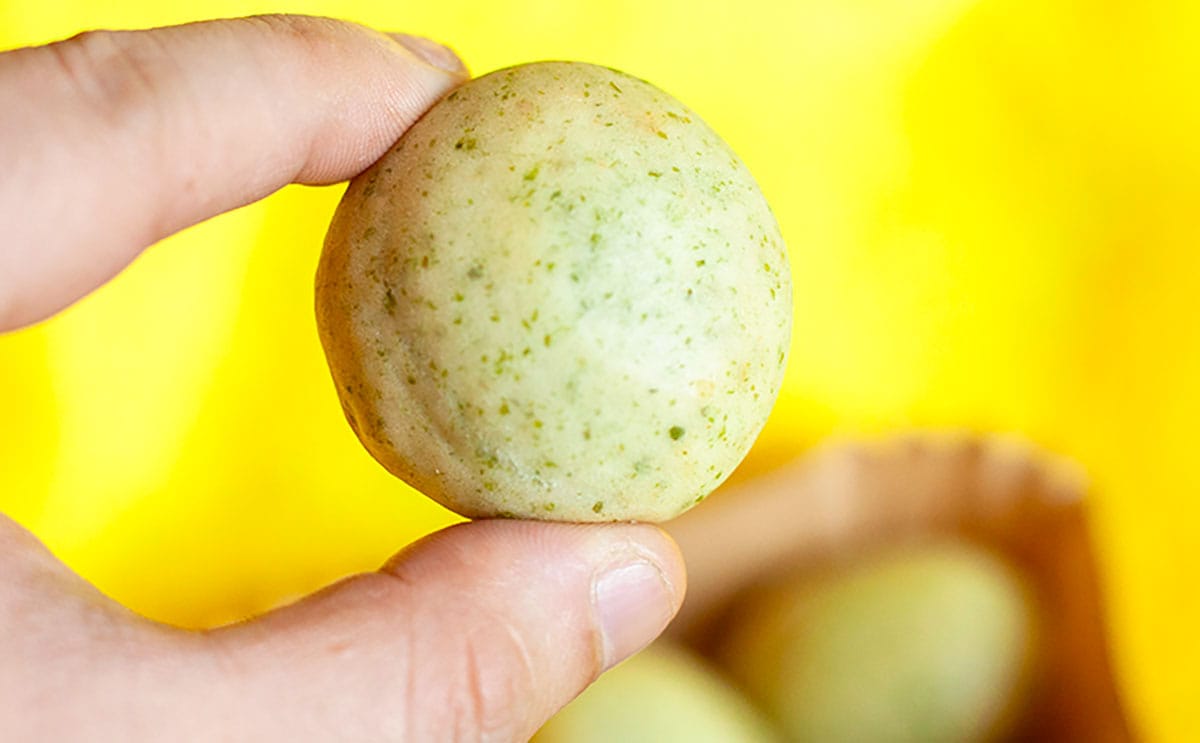 一つひとつはかなり小さめで、いわゆる一口サイズです。表面に緑の粒がたくさんあって、「のり塩味である」ということをあらためて自覚しますね。