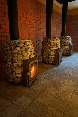 エストニアの薪サウナストーブメーカー「HUUM」のプロダクトを用意し、今回も三連薪サウナストーブによって、パワフルな暖気を提供するという。