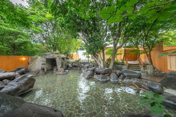 「雪佳の湯」側の露天風呂には、風情ある岩風呂も。