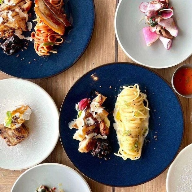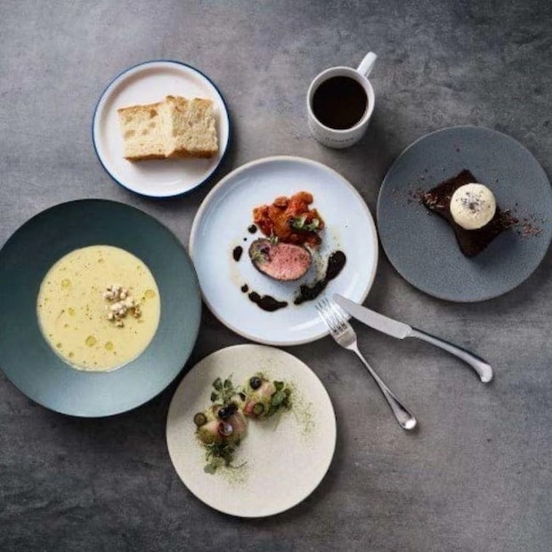 季節野菜のガンボスープ/鮮魚のカルパッチョ、醤油麹、梅酢、大根、ディル/パスタ/メイン/デザート/カフェ