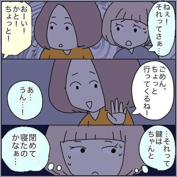 友人の考えているように、かとさんが玄関の鍵を閉めていなかったとしたら。加藤かとさんの想像とは違うできごとが起きていたのかもしれません。