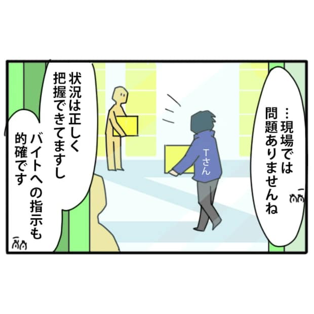 大切な作業を放置し、消えてしまったTさん。Tさんにどこに行っていたのかを問うと、「バイトリーダーに呼ばれた」と説明します。ですが、その会話を聞いたカモちもさんや同僚社員は、違和感を覚えます。