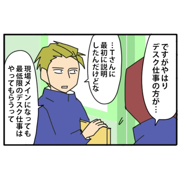 Tさんは現場では問題なく、指示出しも的確であるものの、デスクワークに難があることを訴えます。