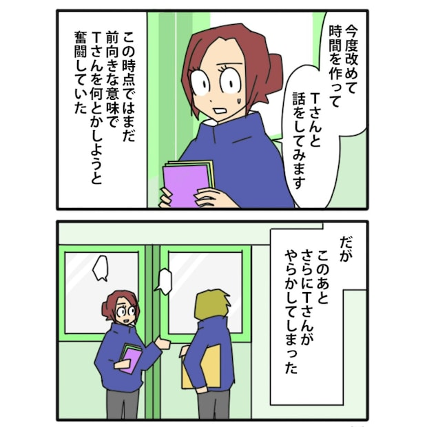 Tさんに対し、地道に指導を続けていた矢先、さらなるトラブルが起きます。