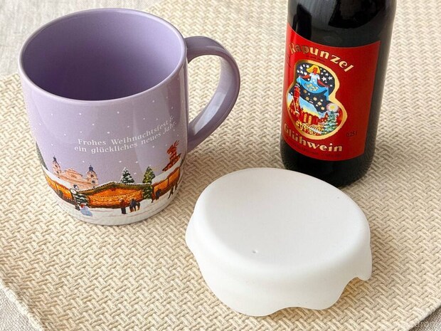 「ラプンツェル グリューワイン ベビー(赤) 250ml」とシリコーンふた付「オリジナルマグカップ」のセット。