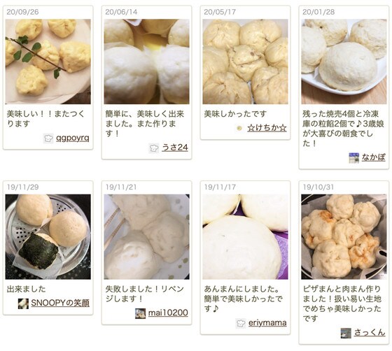 つくれぽ(みんなの作りましたフォトレポートのこと)にも「簡単に、おいしく出来ました。また作ります!」「残った焼売4個と冷凍庫の粒餡2個で♪3歳娘が大喜びの朝食でした!」「これは簡単でおいしい!!肉まん大好き子ども達にまた作ります!」などと嬉しい声がたくさん届いています。