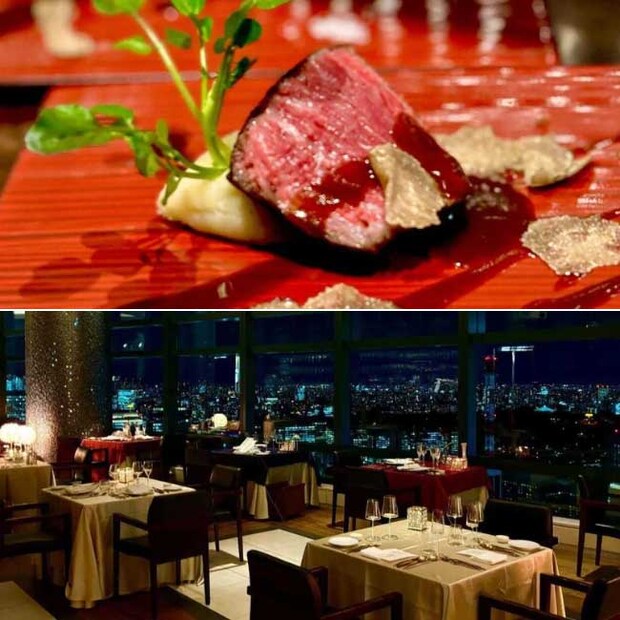 汐留の天空215mから見下ろすのは、東京スカイツリー(R)、皇居、高層ビル群が織り成す圧巻のアーバンビュー。モダンでシックに設えられたダイニングには、都内屈指の夜景が広がり、訪れた瞬間から特別な時間がはじまる。
