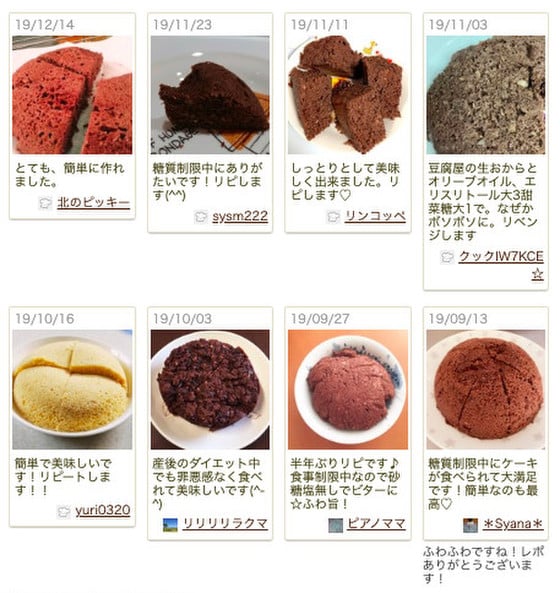 いかがですか?スライスアーモンドやアーモンドプードル、くるみやチョコチップを入れた、抹茶味にしたというコメントもありましたよ。リピーターさんが多いのも特徴。おからなので、糖質制限をしている人はもちろん、忘年会やクリパで少し体重が増えてしまった…なんて人にもピッタリですね!さっそく作ってみてください。(TEXT:森智子)
