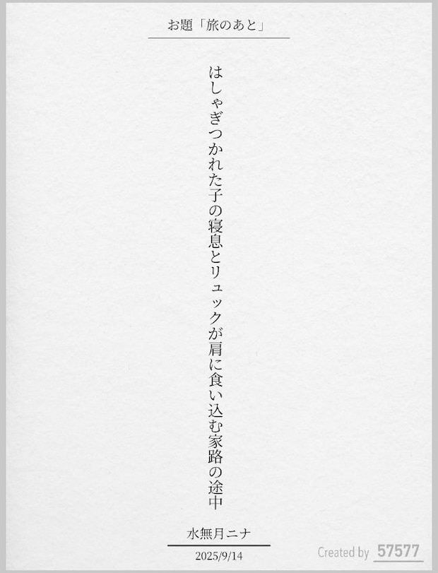 はしゃぎつかれた子の寝息とリュックが肩に食い込む家路の途中