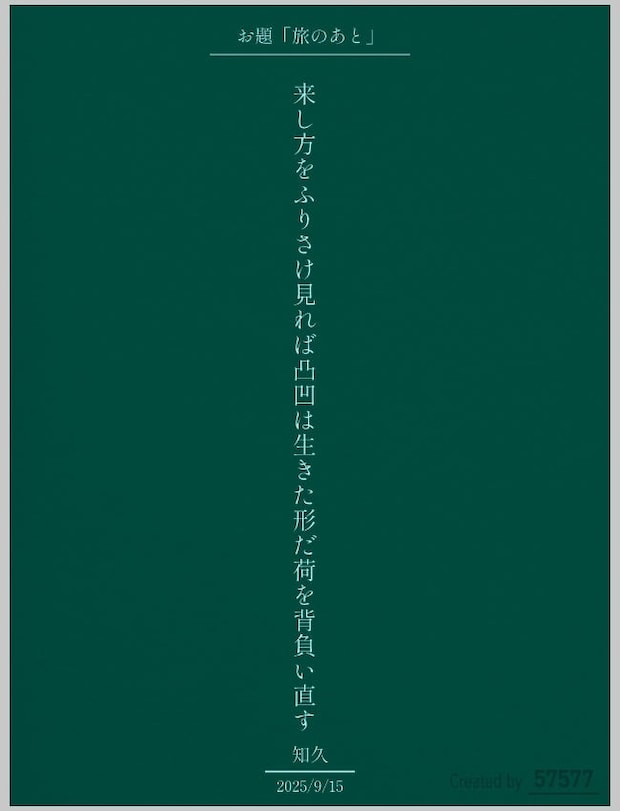来し方をふりさけ見れば凸凹は生きた形だ荷を背負い直す (投稿者/知久さん)