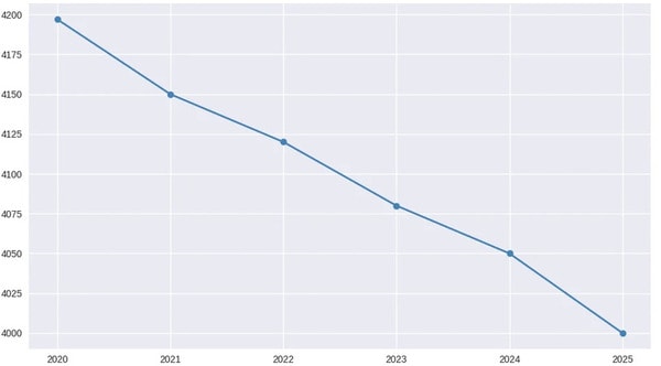 2020年から5年間の人口減少グラフ※縦軸:人口/横軸:年