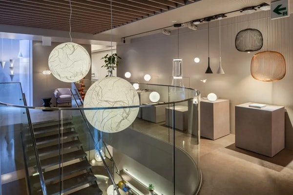 豊富なシーン展示で光の魅力を立体的に体感できる新ショールームとなっている。