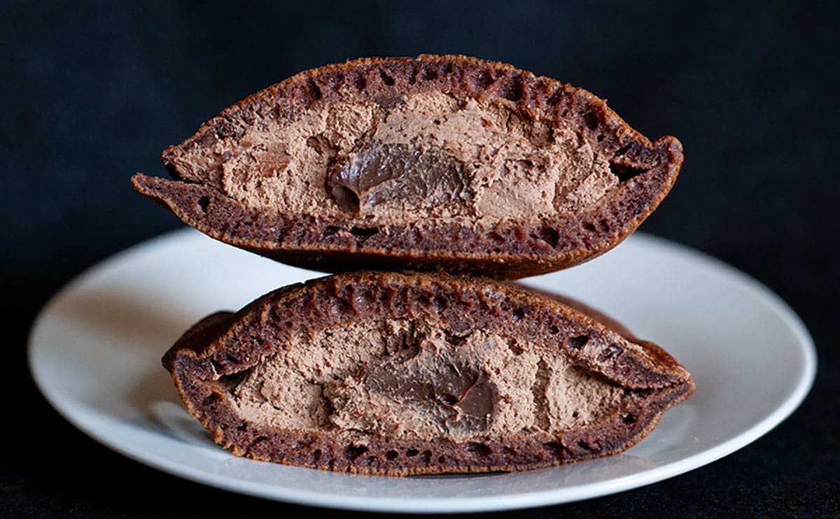 たくさん入っている、少し淡いものがチョコクリーム。そして真ん中にある色の濃いのが、チョコソースです。ふっくらもちもちの生地は、若干ですがチョコの風味を感じ(る気がし)ます。とはいえほぼプレーンなので、中のチョコクリームとチョコソースのおいしさが際立ちますね。