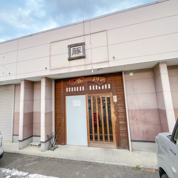 飯塚市頴田、「中華そば麺すけ」などのテナントの並びにある「豚トンジロー」。