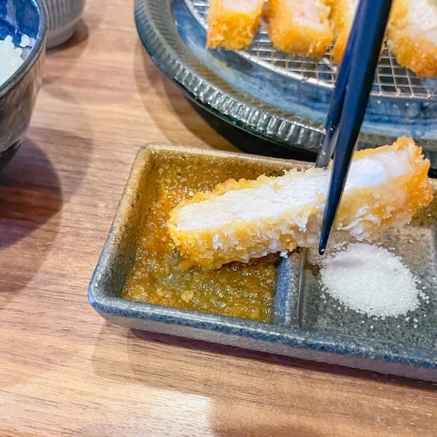 ソースはとんかつソースの他にロレーヌ岩塩、ジャポネソースと3種類の味を楽しむことができます。