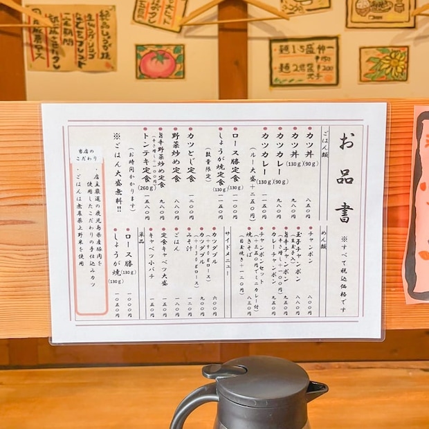 メニューはこちら♪定食やカツ丼、カツカレーなど種類も豊富です。