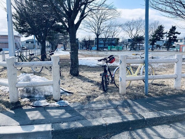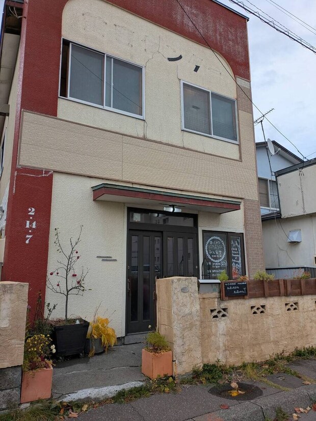 苫小牧市双葉町の住宅街。「かたつむり公園」の近くに構える2階建ての建物は、もともとは理容業協会の研修所だったという。